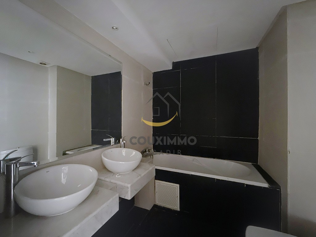 Located in a recent and lively district of Agadir, known for its many restaurants, cafés, shops and excellent public transport connections, this apartment enjoys a practical and pleasant urban setting. The beach is just around 7 minutes away by car, making it a convenient location for both everyday living and leisure.