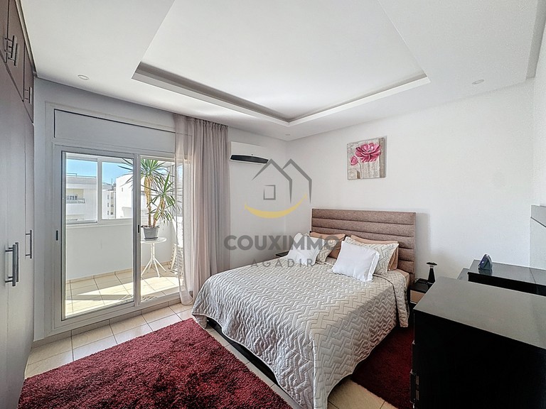 Agadir Jardin du Souss : très bel appartement au dernier étage de cette résidence de standing, avec jardins, parking au sous-sol et terrasse sur le toit.