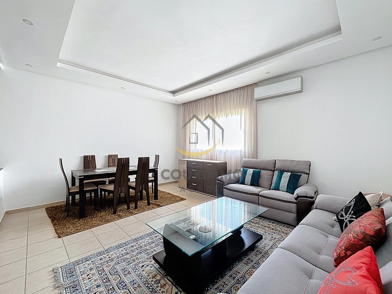 L'appartement fait 105m² habitables et 11m² de terrasse loggia, une entrée avec wc invités, une cuisine avec arrière cuisine, un double salon, 2 chambres avec placards et une salle de douche/wc.