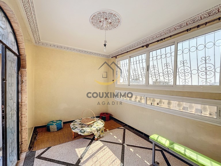 Agadir Talborjt: bel appartement sur 2 niveaux comprenant une cuisine ouverte sur un salon, une suite avec salle de douche/wc, 2 autres chambres et une salle de douche/wc.